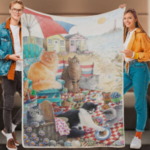 Cat Fleece Blanket – Summer Picnic With Cats – Cat Blanket For Couch – Cats In Blanket – Cats Blanket – Furlidays