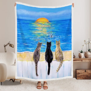 Cat Blanket For Couch – Cat Beach Sunset – Cat In Blanket – Blanket With Cats On It – Furlidays