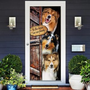 Shetland Sheepdog Sheltie We Are Family Door Cover – Xmas Outdoor Decoration – Gifts For Dog Lovers