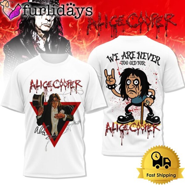 Alice Cooper Never Too Old T Shirt Unleash your style with bold 3D shirts, each design inspired by top trends, hot themes, or your personal vibe. Vivid prints that stand out from every angle. More than a shirt, it’s your style statement.