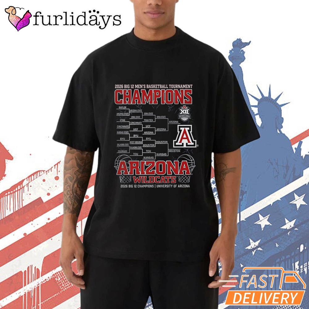Photos Of Arizona Wildcats 2026 Big 12 Men’s Basketball Tournament Champs Bracket T-Shirt