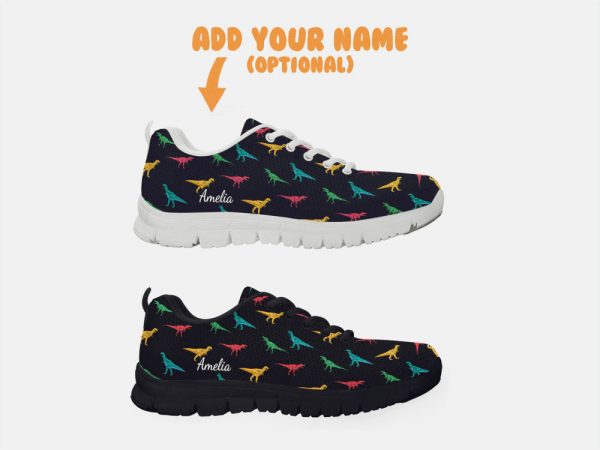 Black Dinosaur Shoes Custom Name Shoes Dinosaur Pattern Running Sneakers For Women Men
