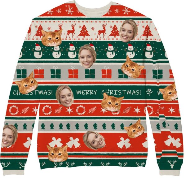 At the heart of this sweatshirt is the ability to customize it with your own face and those of your loved ones. Imagine the surprise and delight on your family and friends’ faces when they see their own funny faces adorned on this sweater! It’s a surefire way to create unforgettable memories and make everyone burst into laughter at your Christmas gatherings.