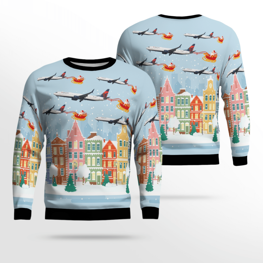 Designed to mimic the iconic Delta Airlines Boeing 737-900ER aircraft, this sweater features intricate details that aviation enthusiasts will adore. From the distinctive blue and white livery to the meticulously crafted engine and wing designs, every element has been thoughtfully included to bring the spirit of flying to your wardrobe.