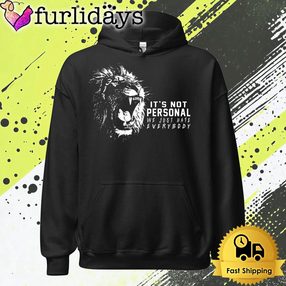 Crafted with top-quality materials, the shirt features bold design elements that make a clear statement. The catchy phrase, “It’s Not Personal We Just Hate Everybody,” is printed prominently on the tee, capturing the fierce pride of Lions fans. Its sleek design incorporates the team’s iconic colors, making it an excellent addition to your game-day wardrobe.