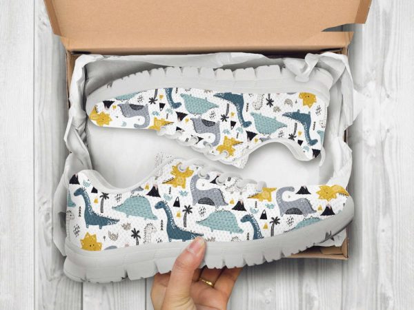 Dinosaur Printed Shoes Custom Name Shoes Dinosaur Pattern Running Sneakers For Women Men