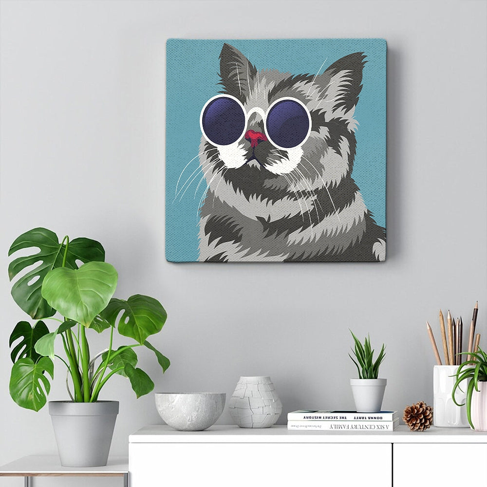 Cat Square Canvas – Funny Painting Of A Gray Cat – Cats Canvas Print – Canvas With Cats On It – Furlidays