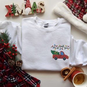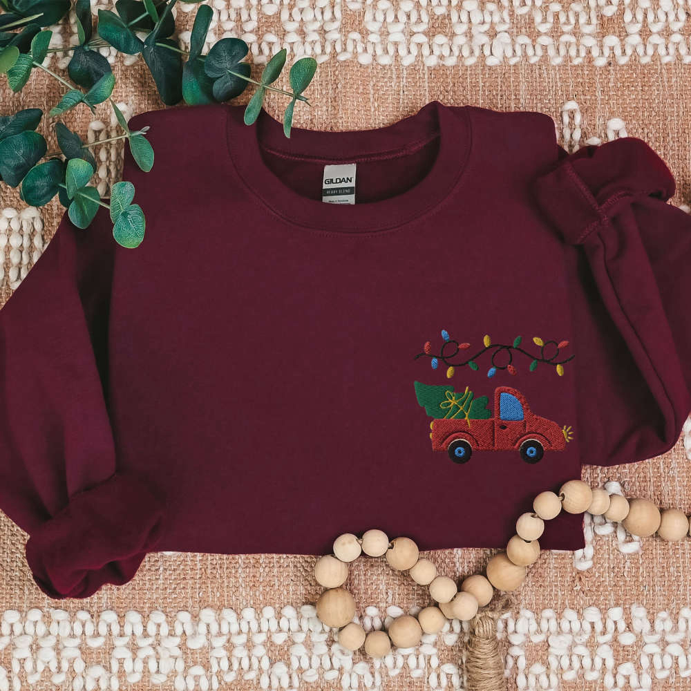 Embroidered Farm Fresh Christmas Trees Sweater, Christmas Truck Sweatshirt, Christmas Gift Information
