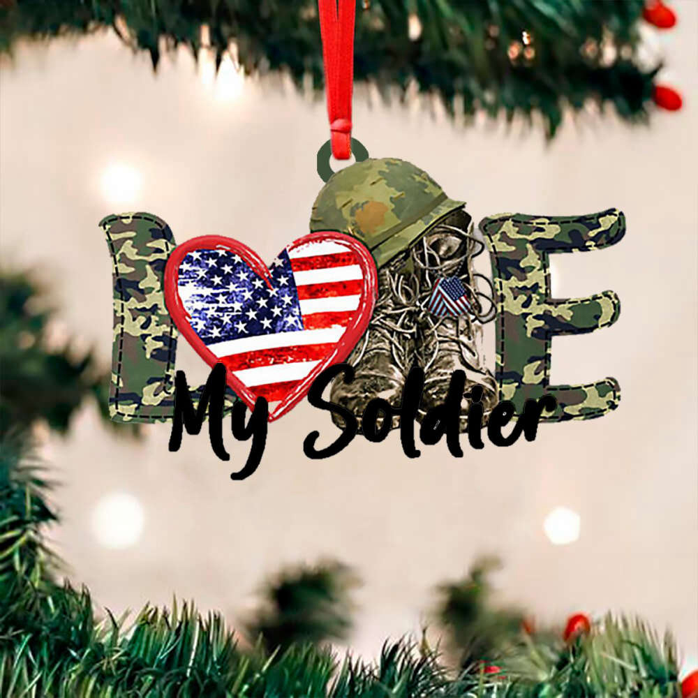 The I Love My Soldier Military Ornament is the perfect addition to your Christmas tree, offering a unique and heartfelt way to honor and appreciate our brave soldiers. Designed with meticulous attention to detail, this military-themed ornament is a must-have for any proud American.