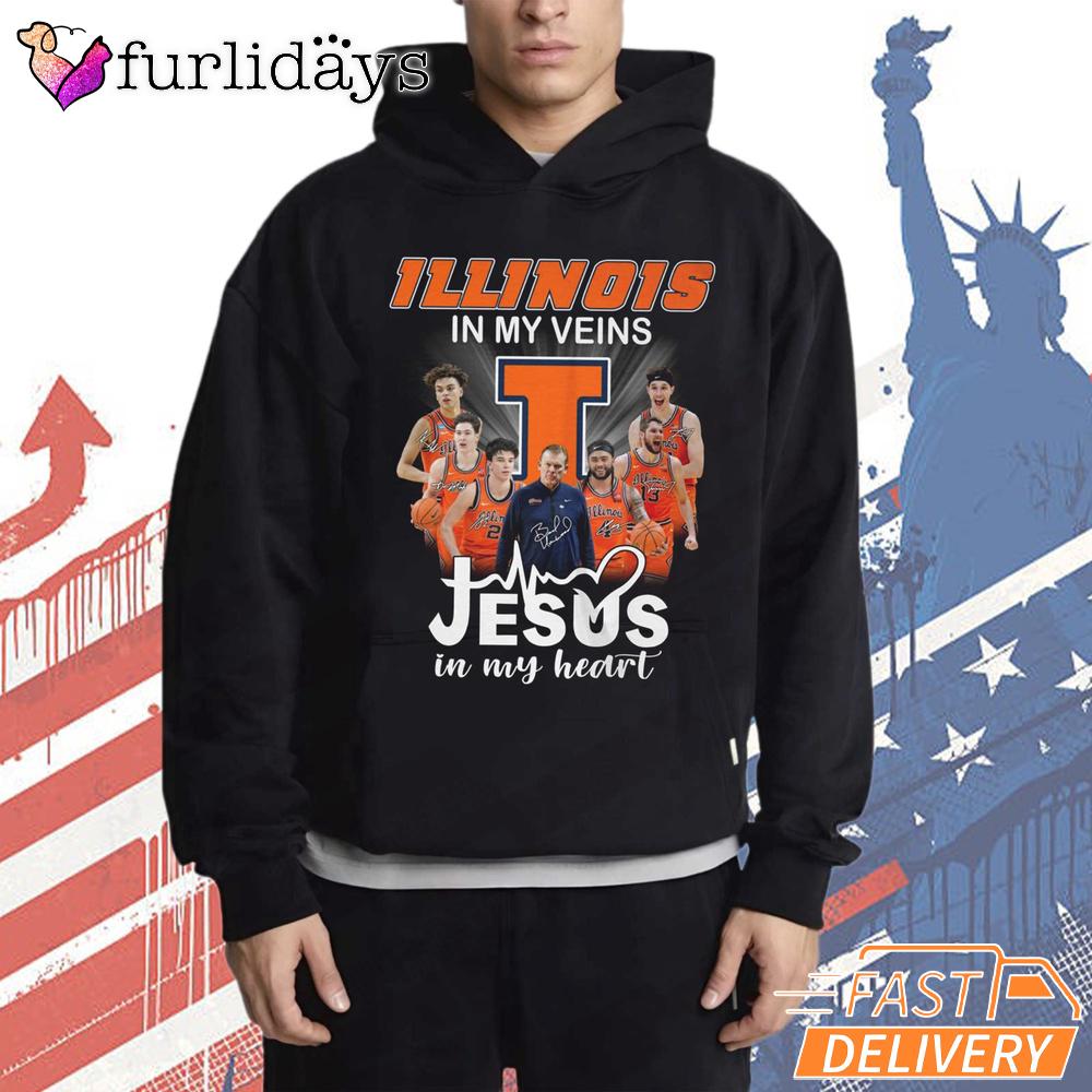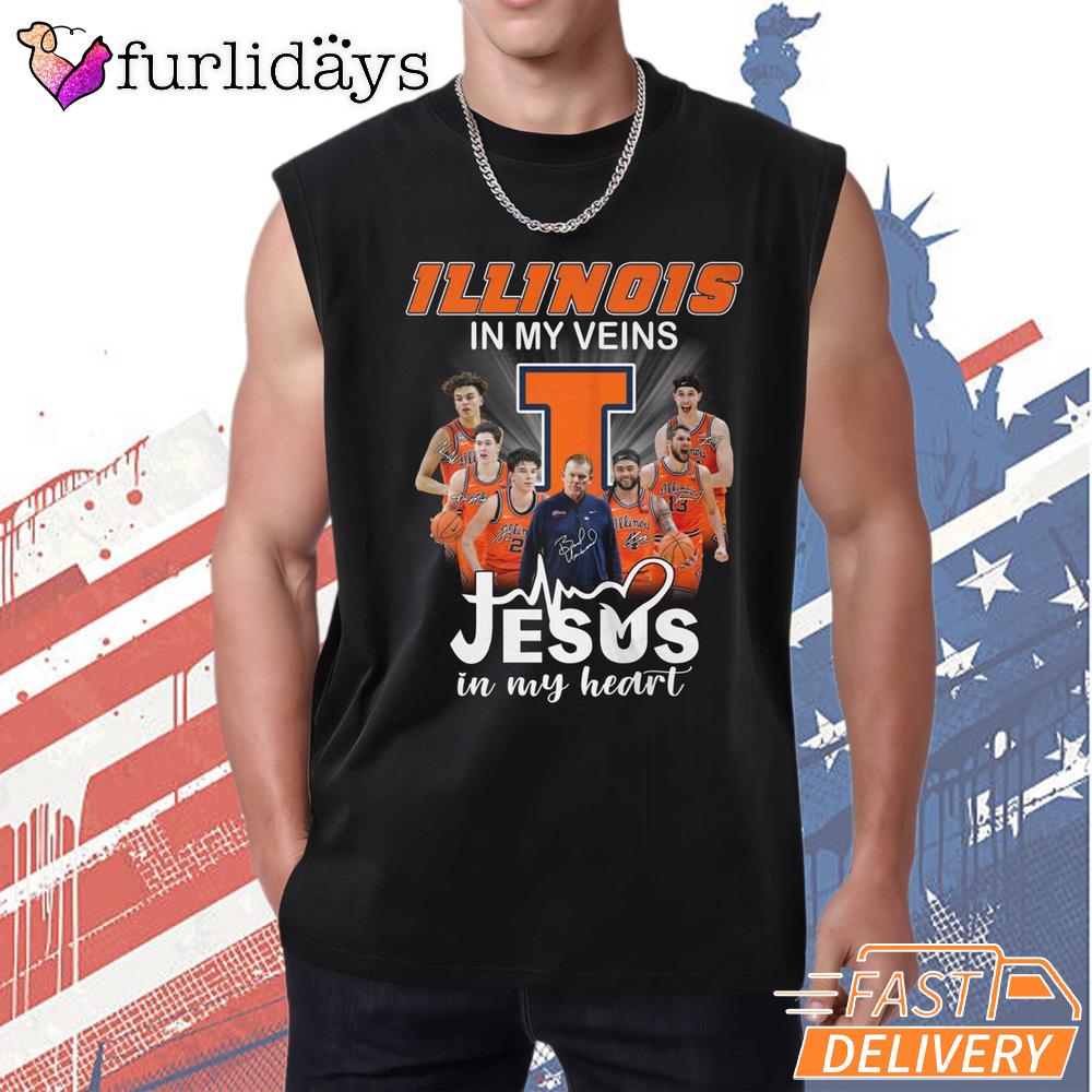 Illinois Fighting Illini In My Veins Jesus Faith Basketball Fan T-Shirt