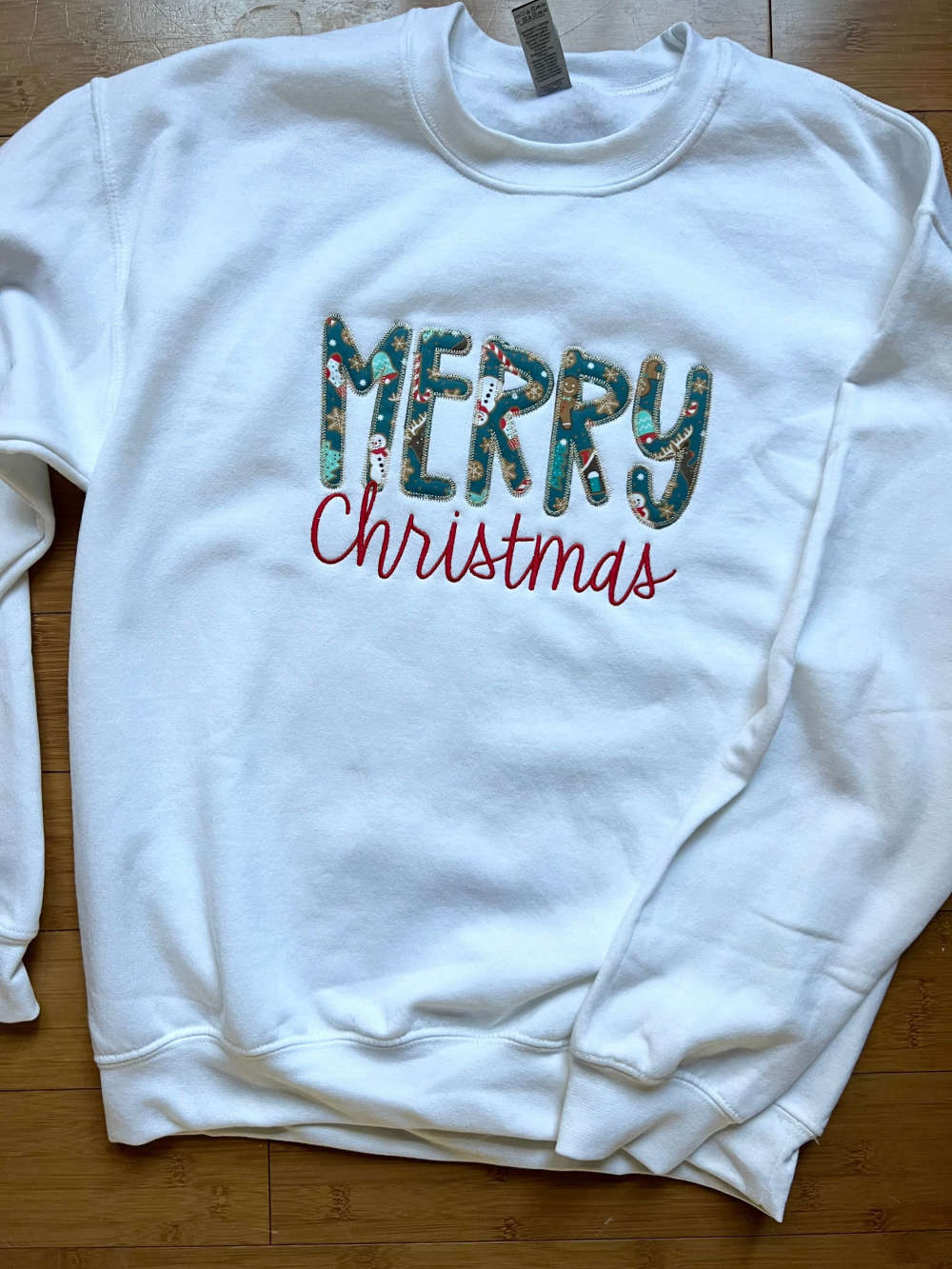 Merry Christmas Applique Sweatshirt, Embroidered Christmas Sweatshirt For Holidays Information