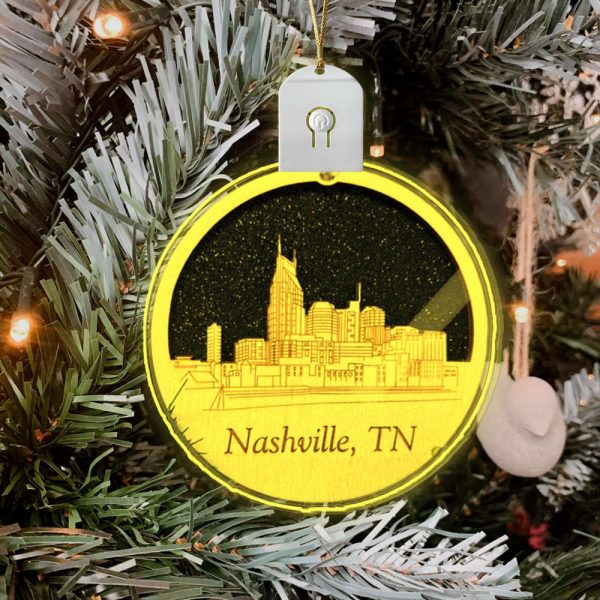 Not only does this ornament offer a visual spectacle, but it also brings joy to your holiday season. The LED lights create a warm and inviting ambiance, evoking feelings of nostalgia and happiness. Imagine gathering with your loved ones around the Christmas tree, admiring the twinkling lights, and reminiscing about your favorite Nashville memories. This ornament captures the essence of the city and brings it into your home, creating a truly magical experience.