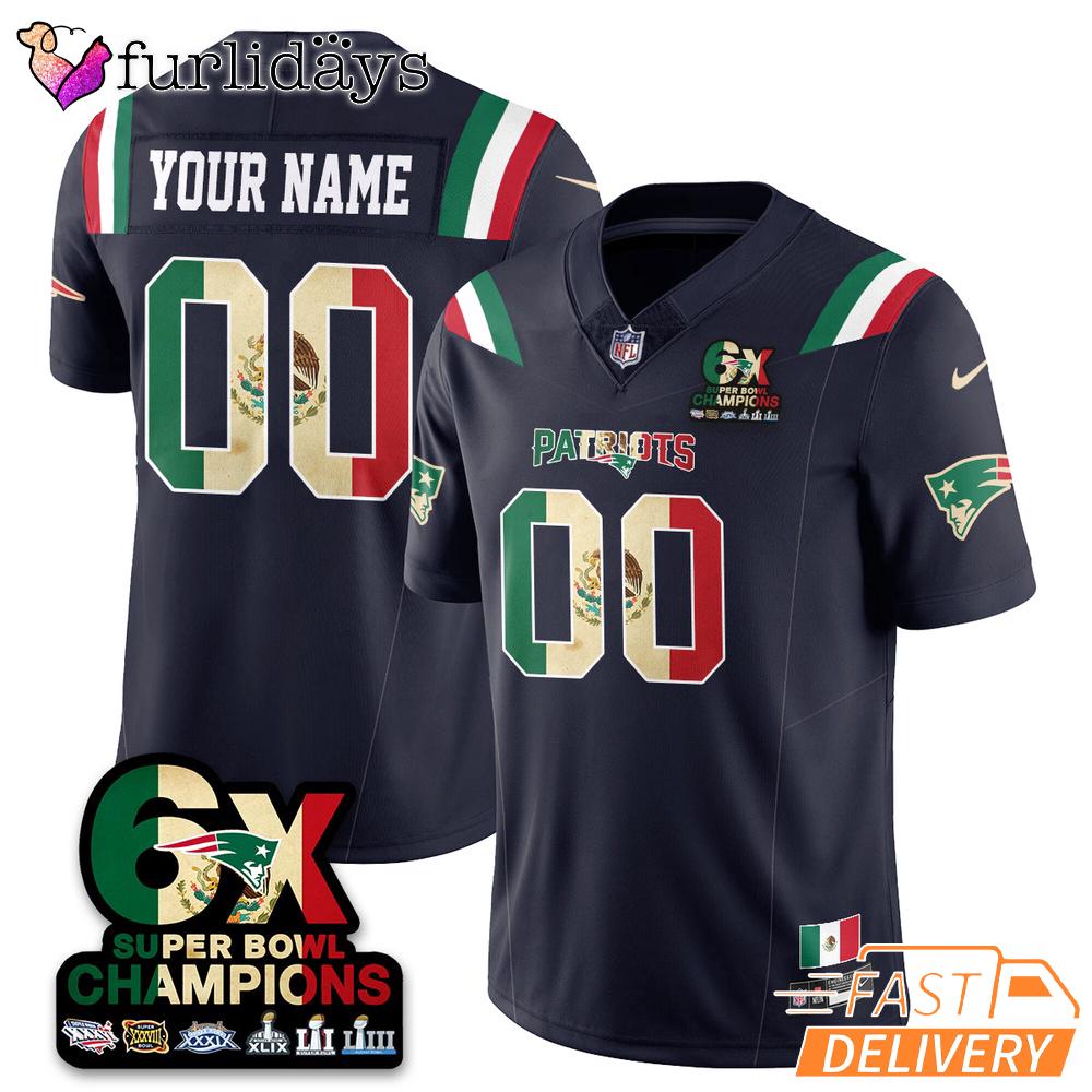 New England Patriots Mexico Football Jersey Custom Name Super Bowl 6X Champions Navy