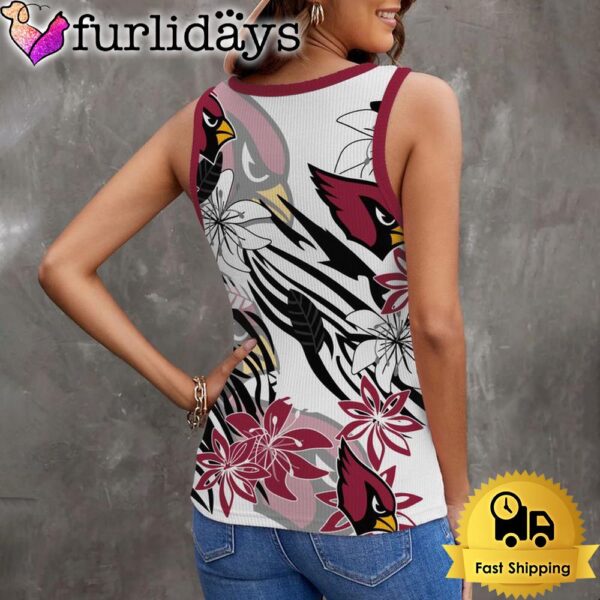 Photos Of NFL Arizona Cardinals Summer Flower Pattern Women V-Neck Ribbed Tank Top