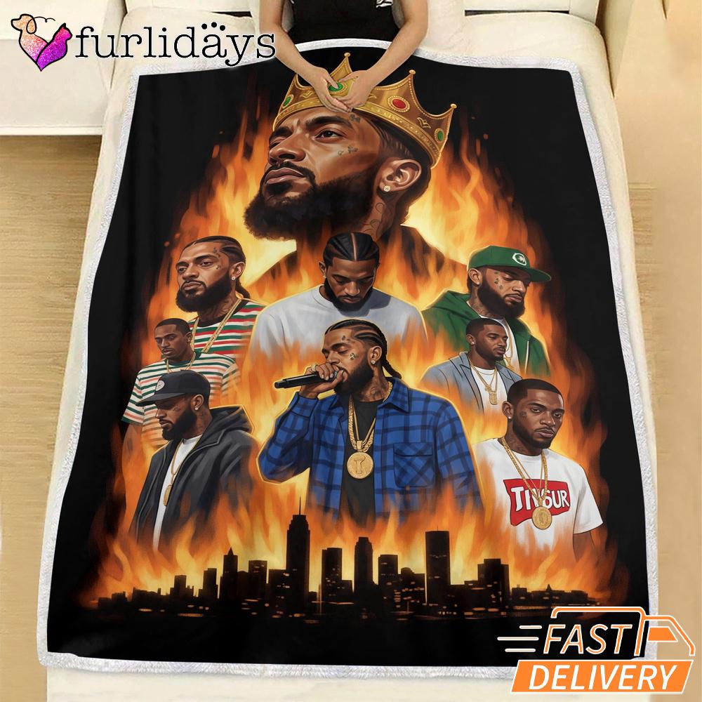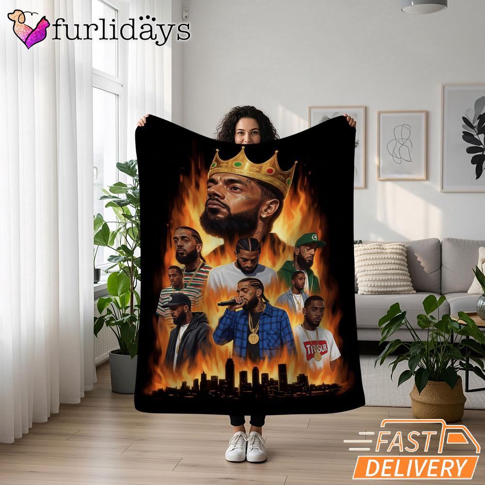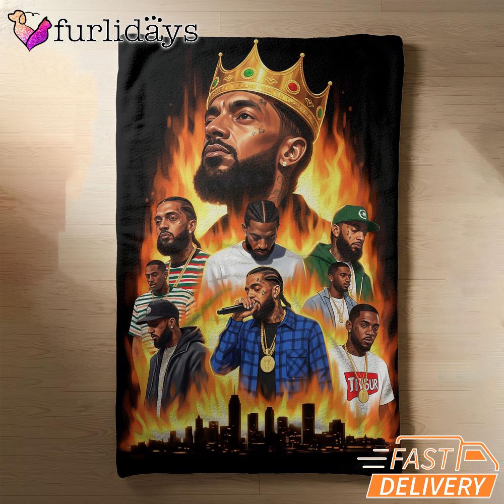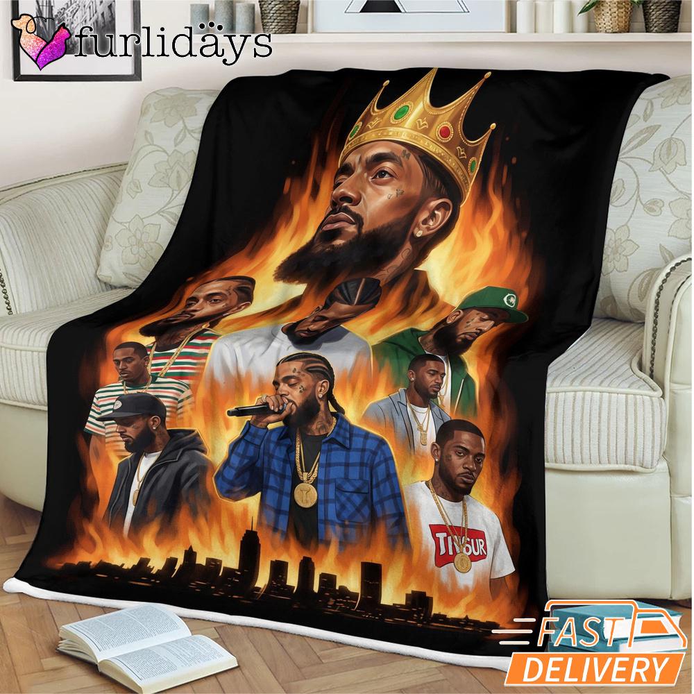 Nipsey Hussle Flames City Blanket Powerful Rap Icon Art Warmth Meets Street Culture.