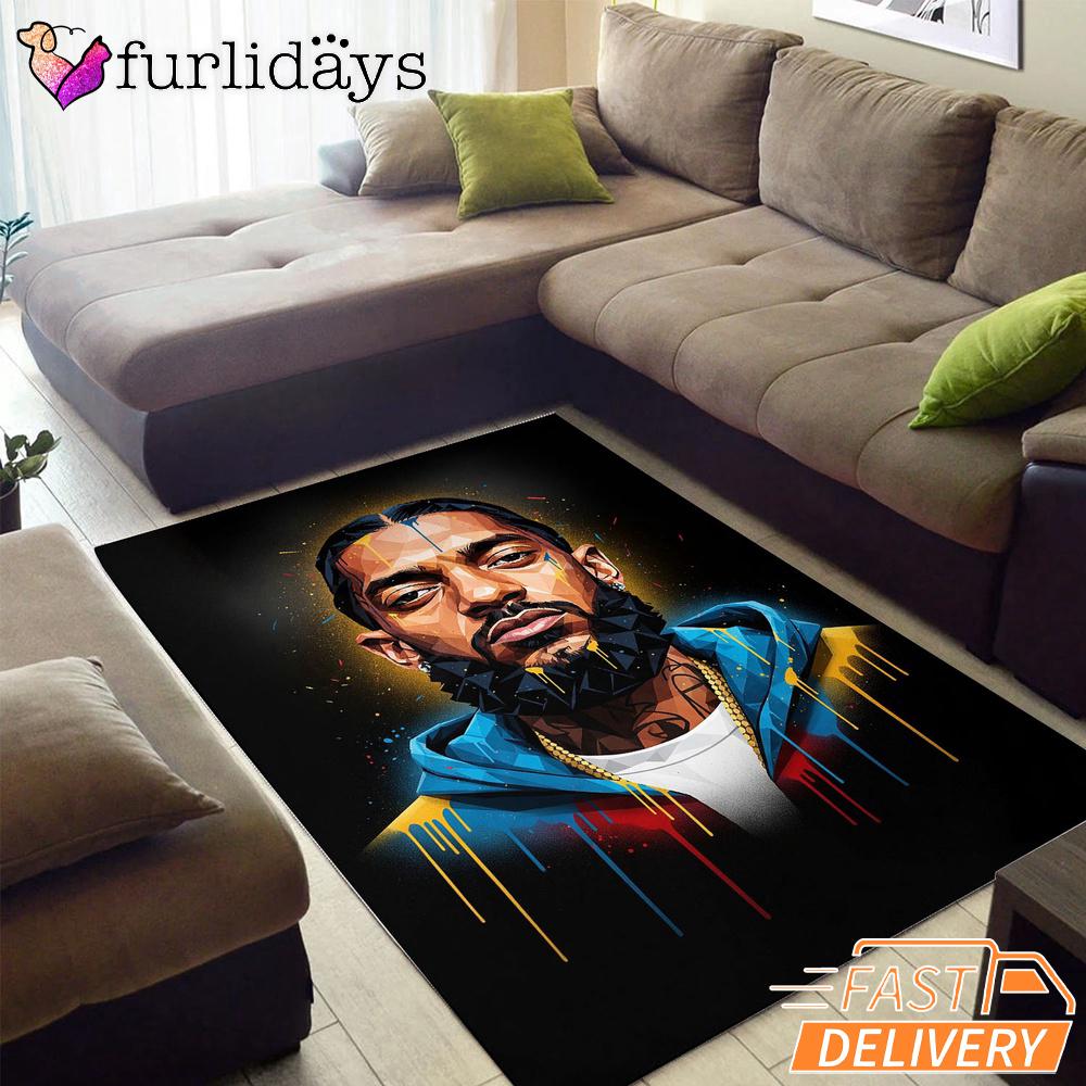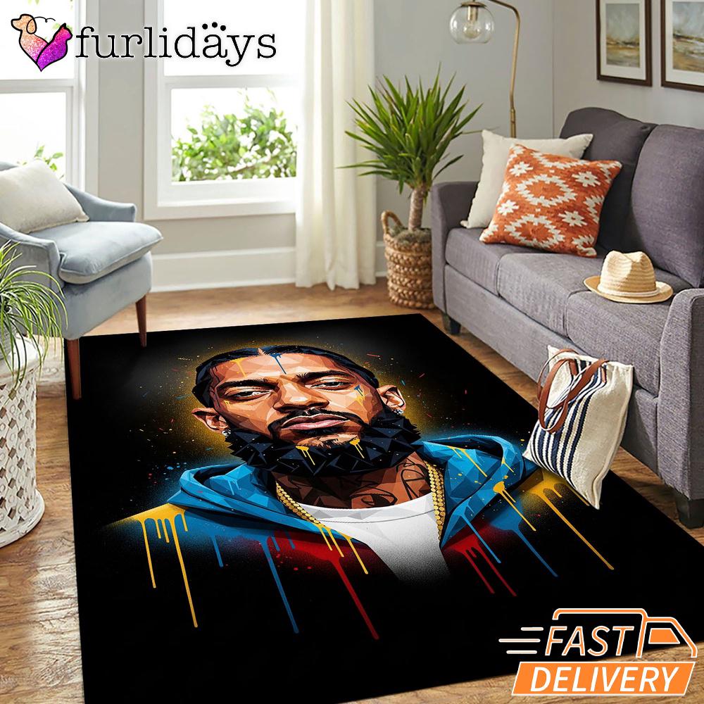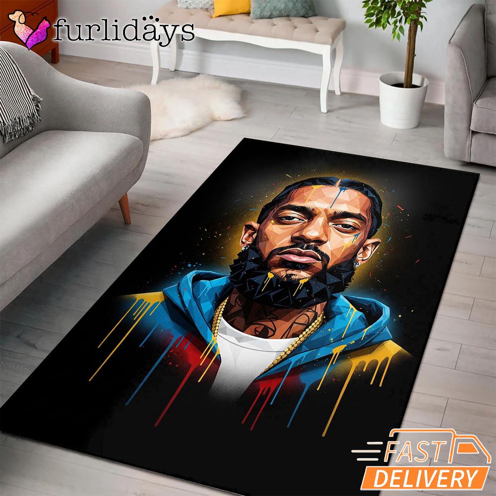 Nipsey Hussle Golden Portrait Rectangle Rug Graffiti Street Style Iconic Style for True Fans.