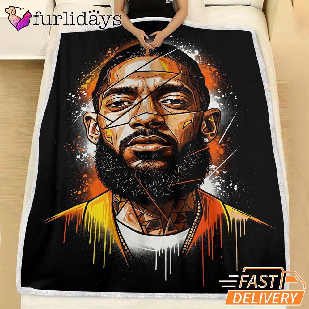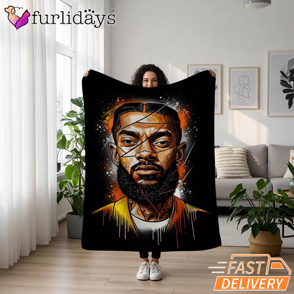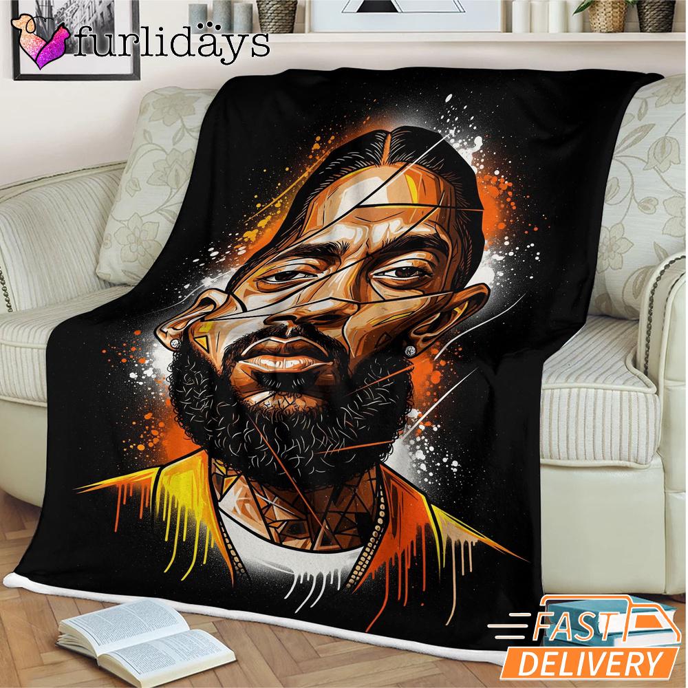 Nipsey Hussle Realistic Portrait Blanket Urban Hip Hop Art Warmth Meets Street Culture.
