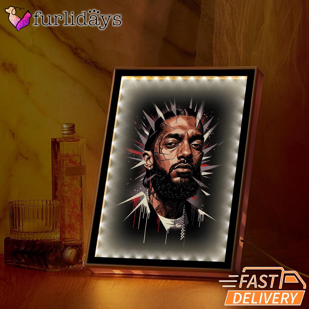 Photos Of Nipsey Hussle Red Black Splash Mirror Night Light Bold Rap Icon Design, Rapper Lamp