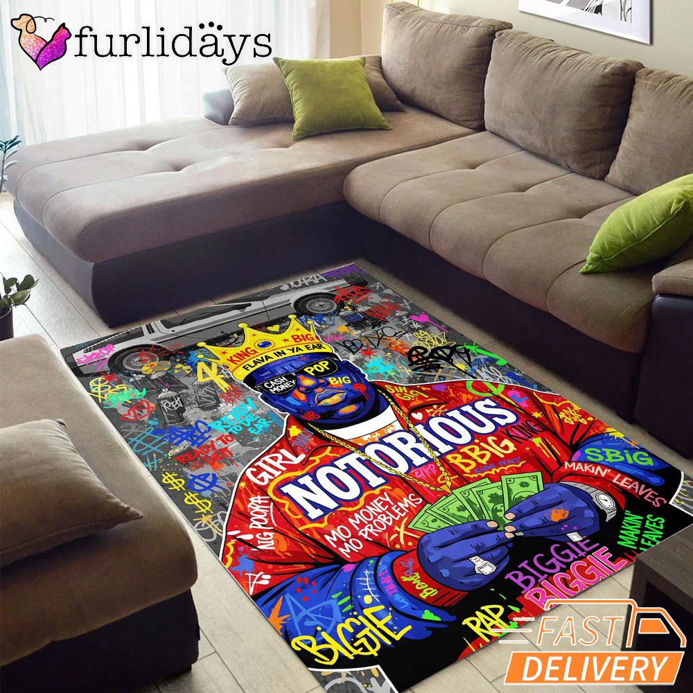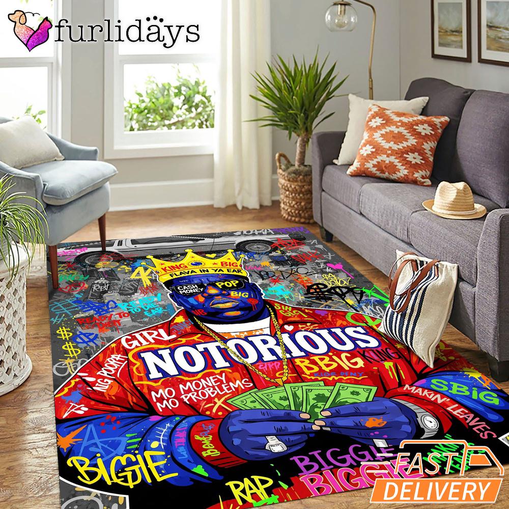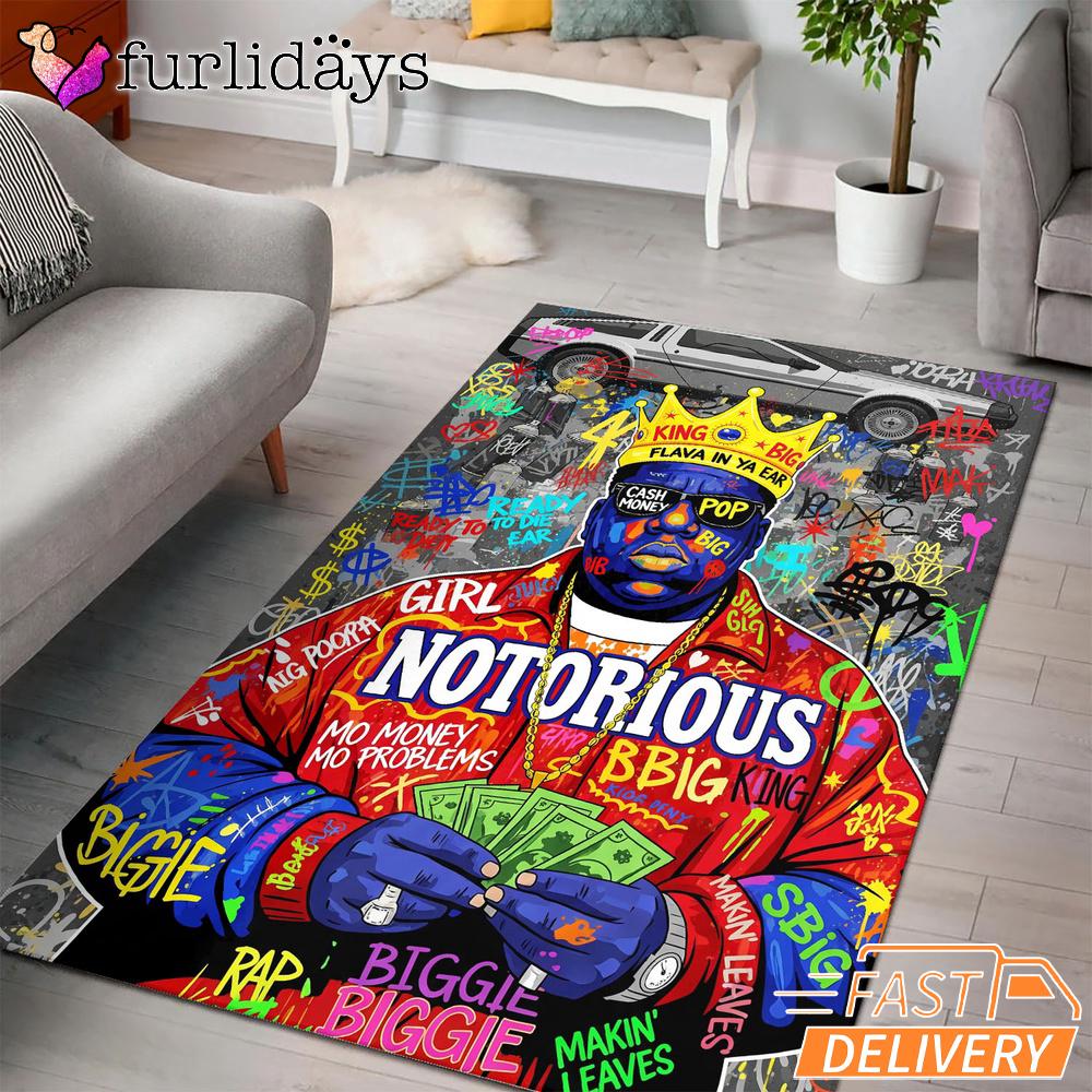 Notorious BIG Money Pop Yellow Rectangle Rug Iconic Style for True Fans.