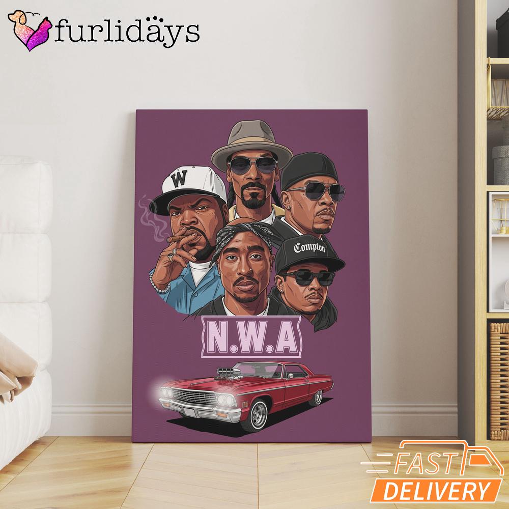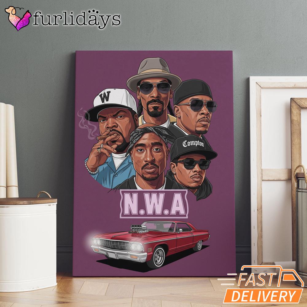 NW A Lowrider Group Canvas, Rap Lengends Poster A Tribute to a Golden Era.