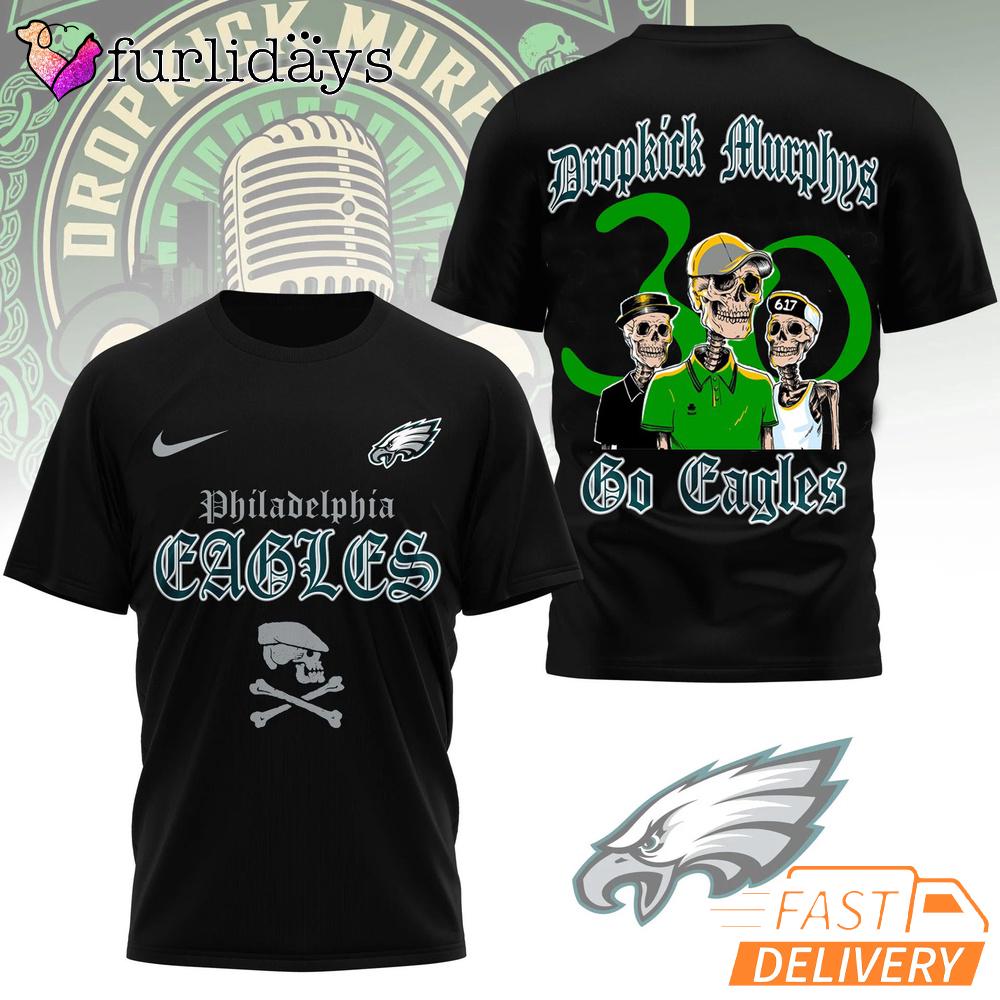 Philadelphia Eagles Dropkick Murphys 30th Anniversary Punk Rock T-Shirt Celebrate football pride and punk rock attitude in one bold design with this Philadelphia Eagles fan shirt inspired by the legendary sound of Dropkick Murphys. Created for fans who live for game day energy and rebellious music culture, this unique 3D shirt blends NFL passion with the raw spirit of Celtic punk.