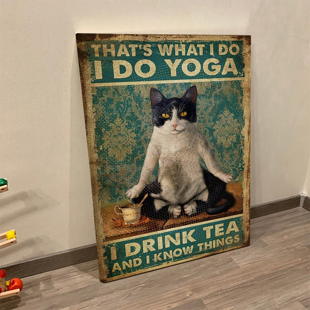 Portrait Canvas – Funny Cat Yoga Tea Canvas Print Wall Art – Black Cat Yoga Poster – Cat Lover Poster – Canvas Poster Cat And Yoga Art – Cat Canvas – Furlidays