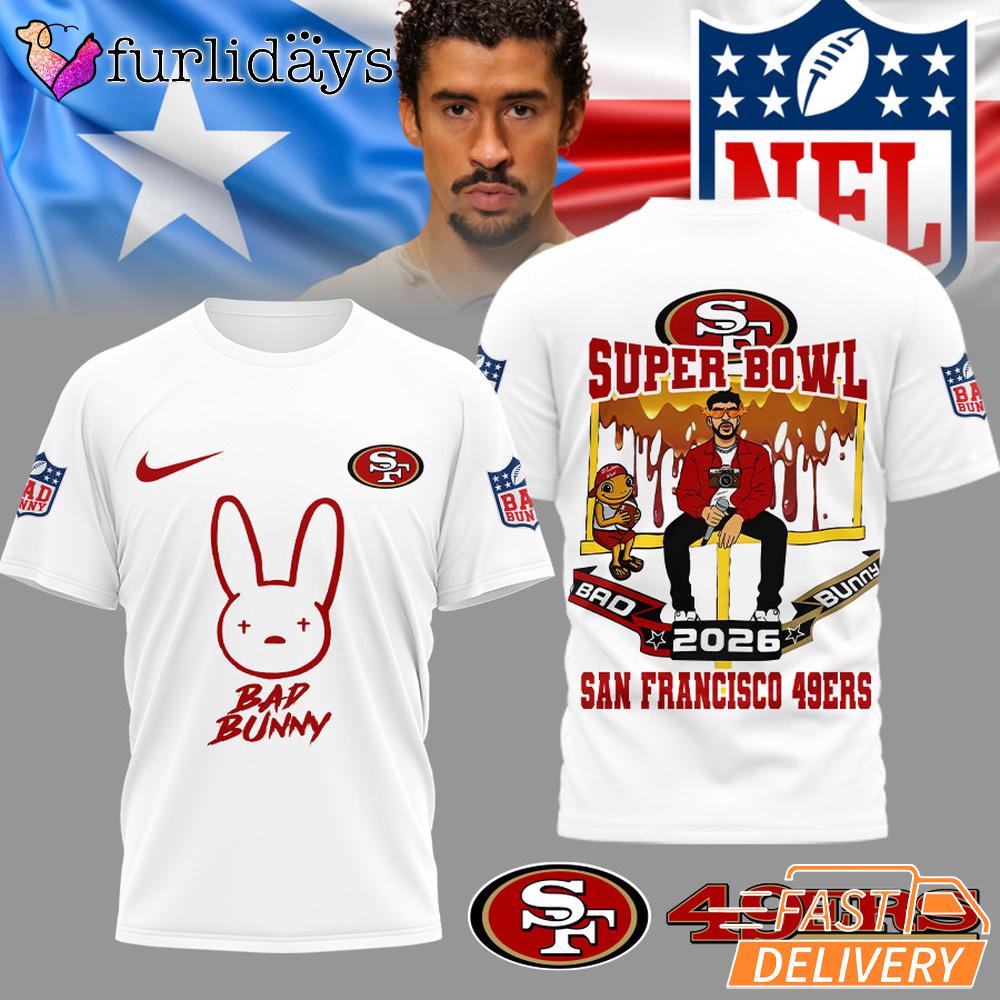Photos Of San Francisco 49ers NFL Bad Bunny Super Bowl Limited Edition T Shirt