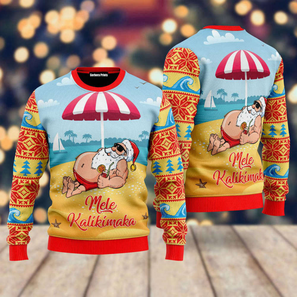At an affordable price, this Santa Claus Mele Kalikimaka Beach Ugly Christmas Sweater offers exceptional value for money. It combines exceptional quality, timeless design, and the joyous spirit of Christmas, making it a must-have addition to your festive wardrobe.