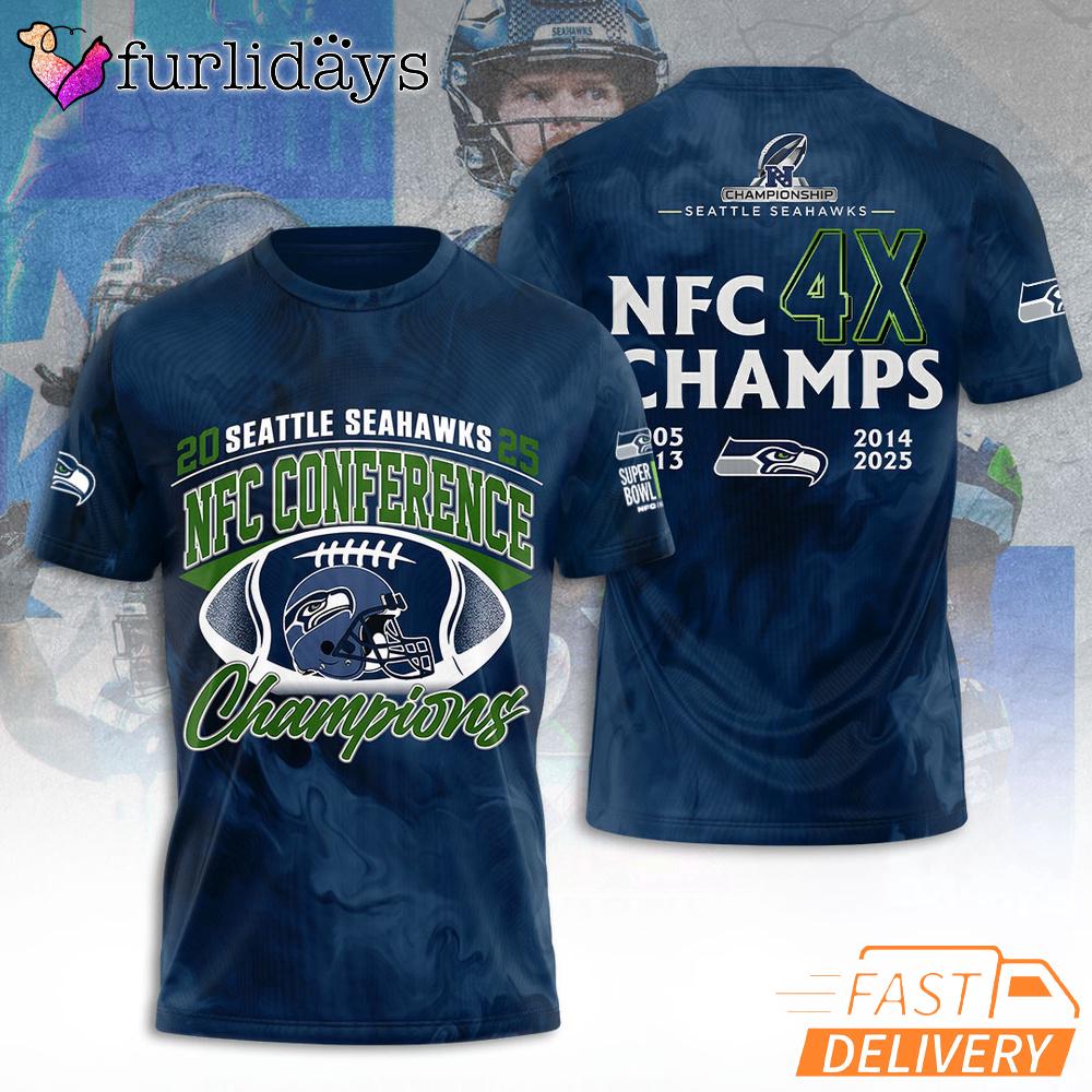 Seattle Seahawks NFC Conference Champs 4X Legacy Graphic 2026 Fan T Shirt Show your loyalty and championship pride with this Seattle Seahawks Super Bowl 2026 fan gear, designed for true NFL supporters who live for game day moments. As the Seahawks return to the biggest stage in football, this season marks another historic chapter for one of the most competitive franchises in NFL history. Known for their passionate fan base and relentless playing style, the Seahawks continue to represent strength, energy, and winning tradition.