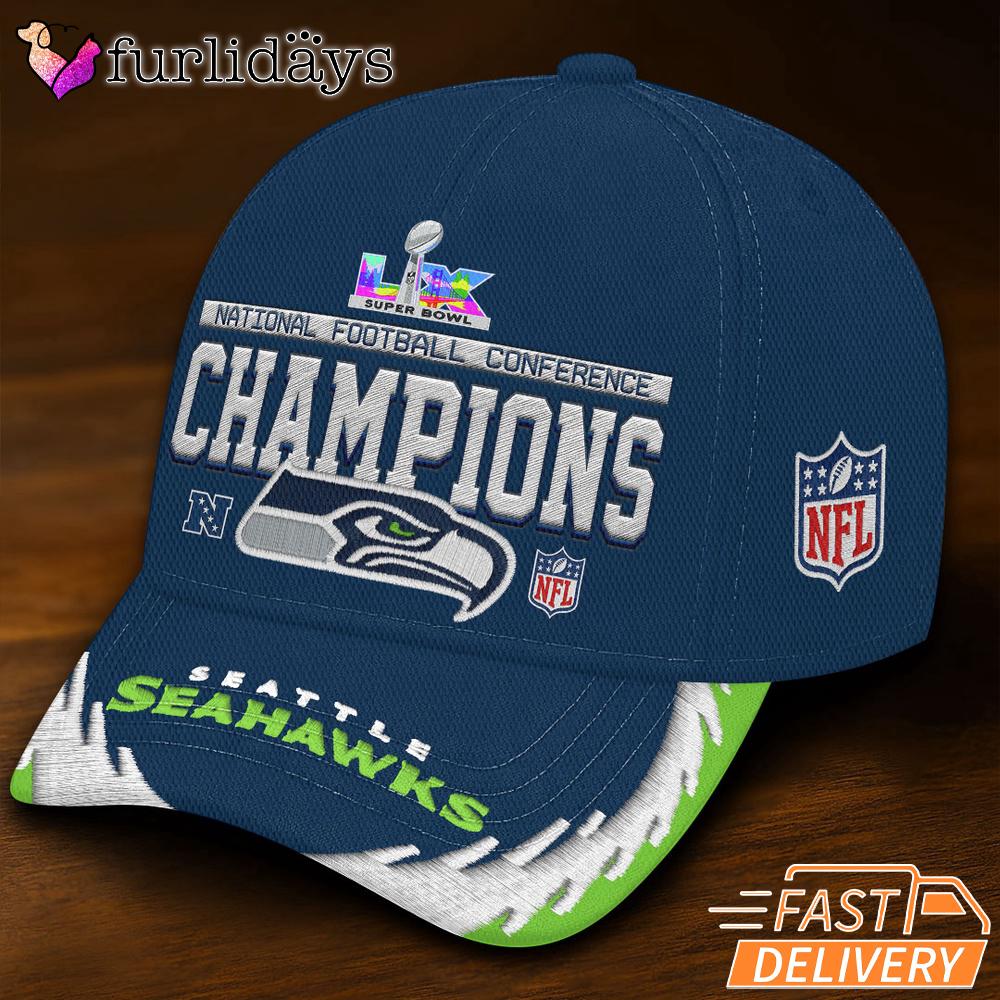 Seattle Seahawks Super Bowl LX Champions Trophy Graphic 2026 Fan Cap