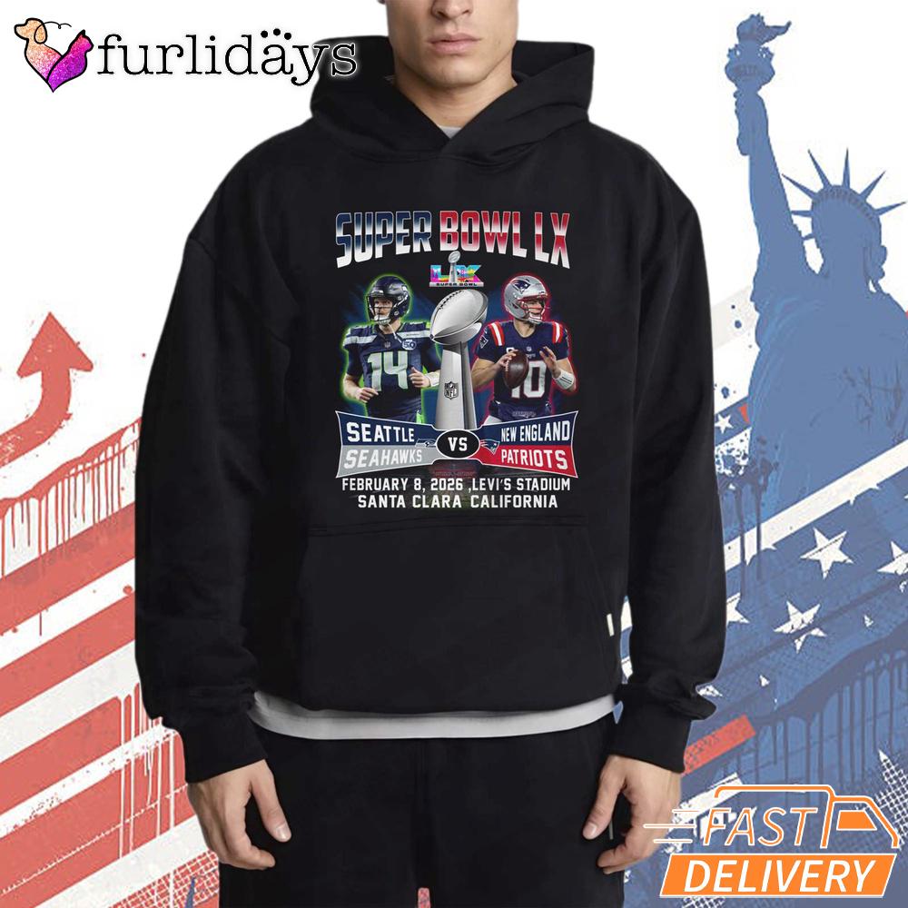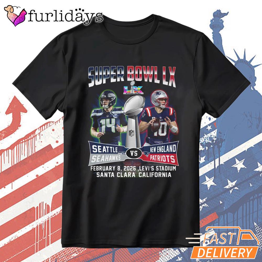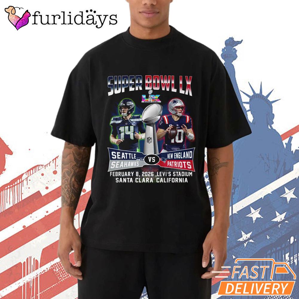 Seattle Seahawks Super Bowl LX Matchup Poster Graphic T-Shirt NFL 2D Shirt.