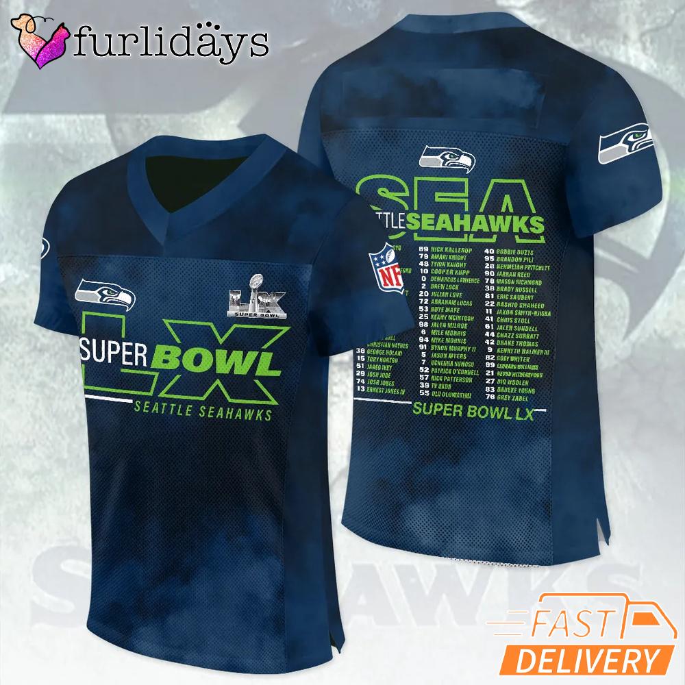 Seattle Seahawks Super Bowl LX Trophy Graphic Navy Jersey 2026 Football Jersey