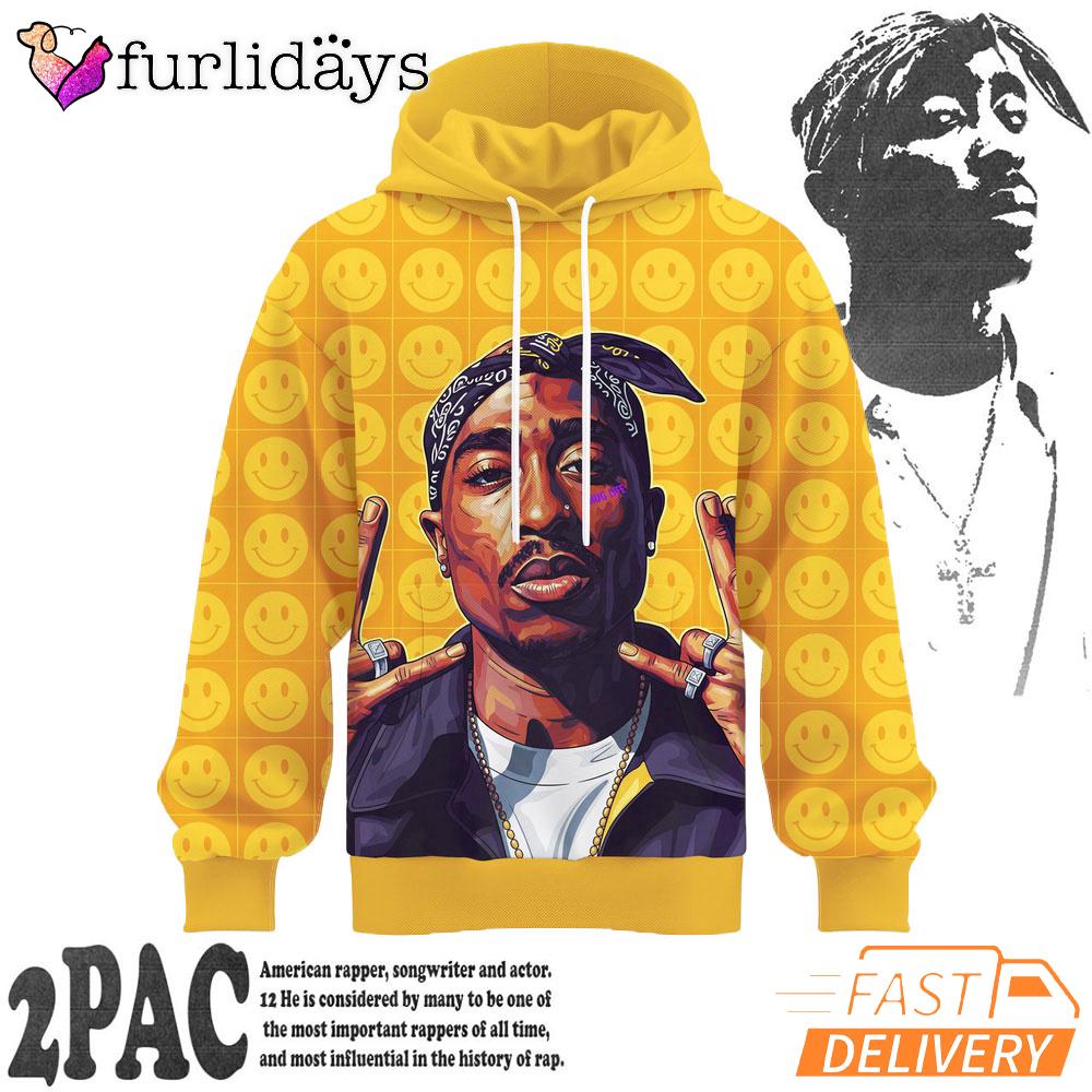 Photos Of Tupac 90s Hip Hop Smiley Art 3D Hoodie, 90s Music Hoodie