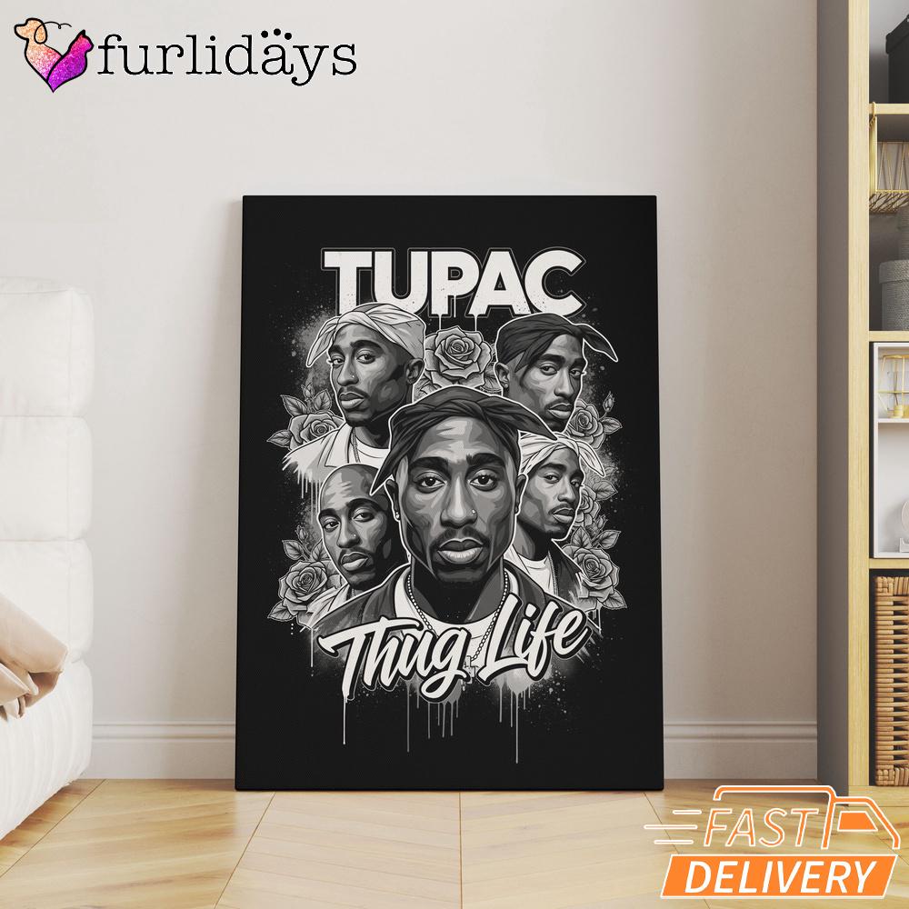 Tupac Black White Roses Canvas, Rap Lengends Poster A Tribute to a Golden Era.