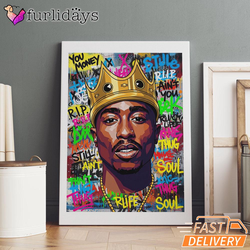 Tupac King Crown Pop Blue Canvas, Rap Lengends Poster A Tribute to a Golden Era.