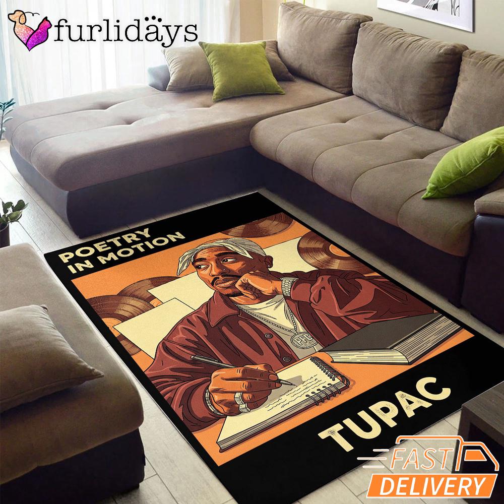 Tupac Poetry Motion Brown Rectangle Rug Iconic Style for True Fans.