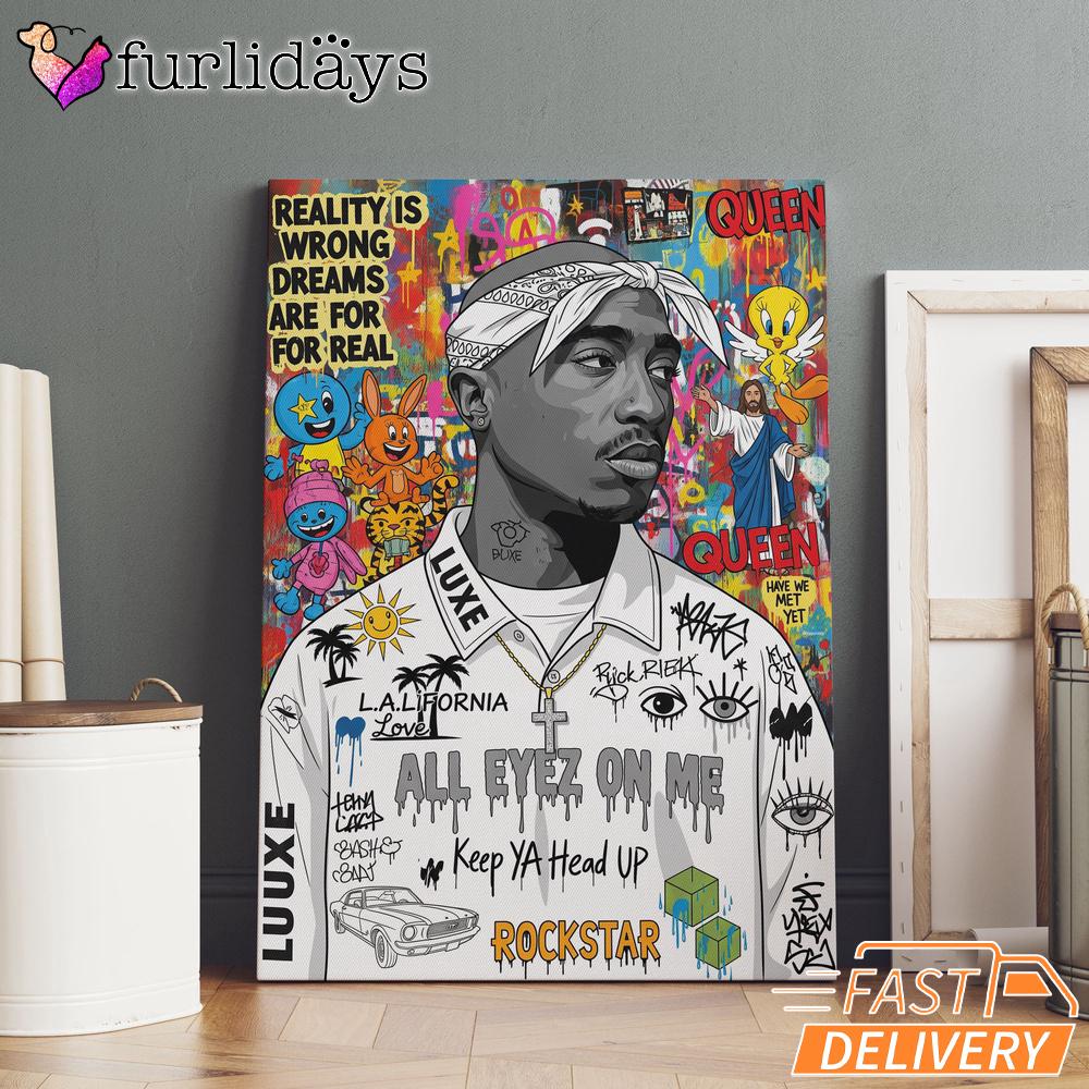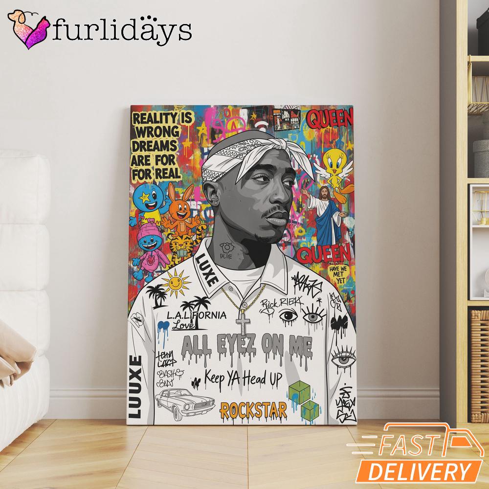 Tupac Real Vision Graffiti Canvas, Rap Lengends Poster A Tribute to a Golden Era.