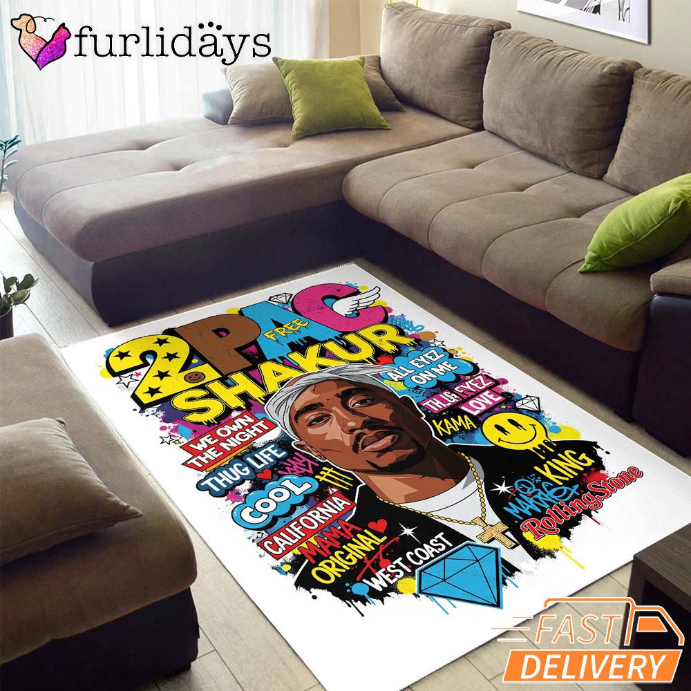 Tupac Shakur King Graffiti Rectangle Rug Iconic Style for True Fans.