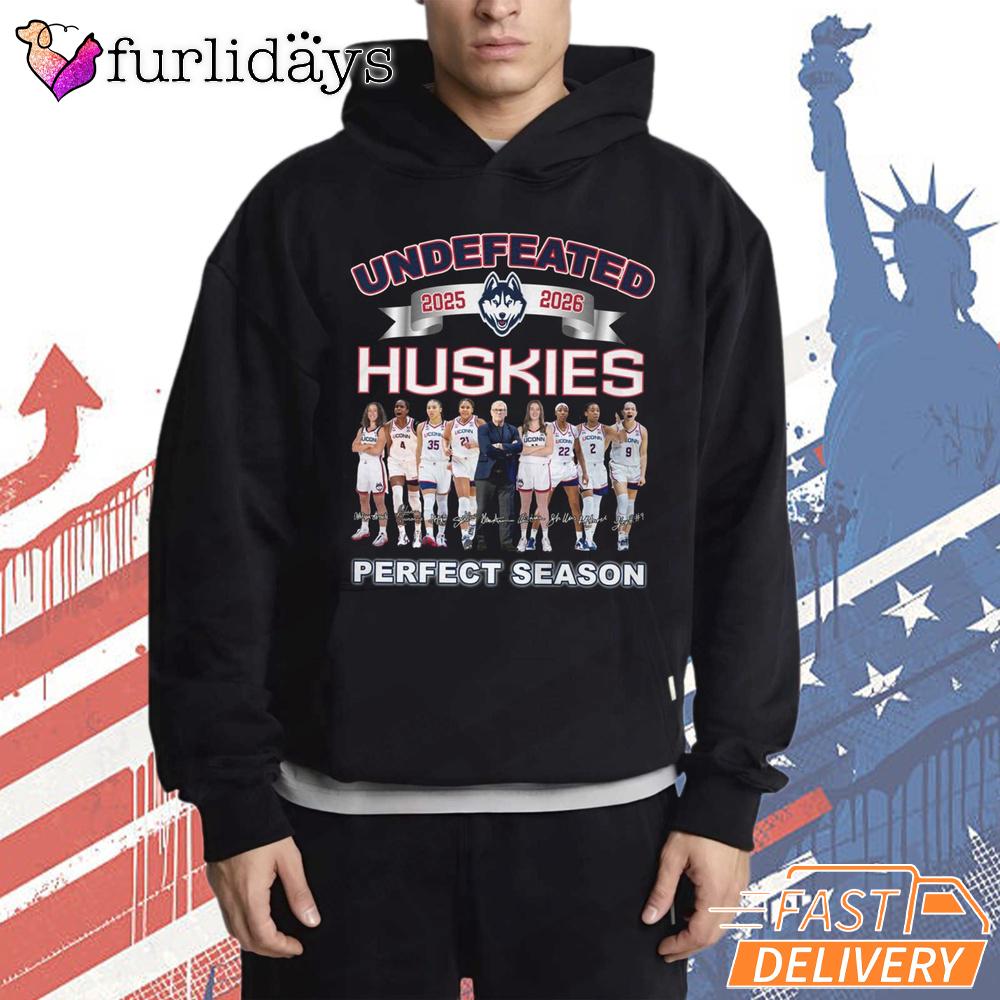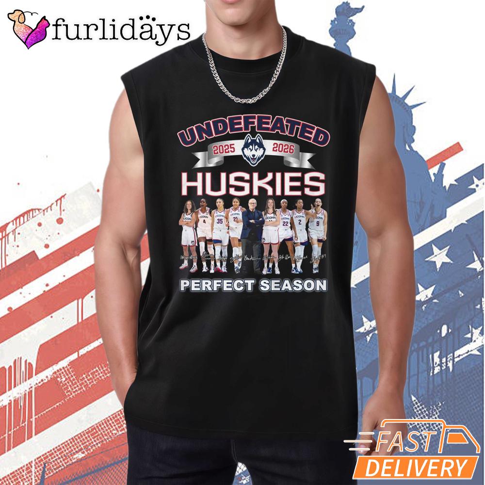 UConn Huskies Perfect Season Undefeated NCAA Basketball Champions T-Shirt is designed for passionate fans who live for game day energy and championship moments. Inspired by the excitement of the 2026 season across major US sports, this T-shirt combines bold graphics, team spirit, and modern fan style into one standout look.