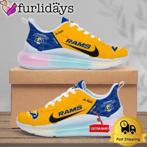 NFL Los Angeles Rams Team Logo Custom Women’s Rainbow Atmospheric Cushion Running Shoes