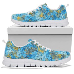 Women’s Blue Flower Sneakers, Birthday Gifts Girlfriend Casual Cute Sneakers
